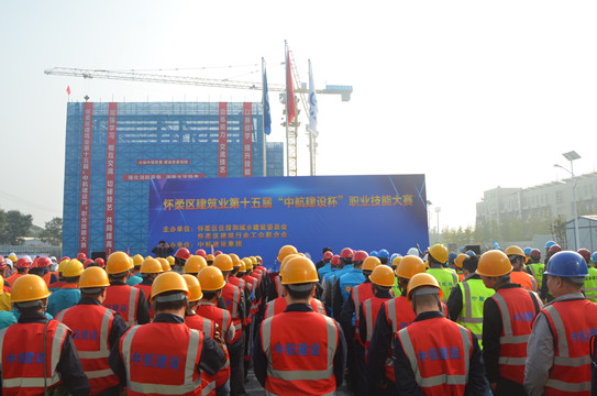 10月18日,由怀柔区住建委、建筑行业工会联合会共同主办,华体会手机网页版登录入口-华体会(中国) 协办的怀柔区建筑业第十五届“中航建设杯”职业技能大赛,在我集团公司承建的一零一中学怀柔校区扩建项目部拉开帷幕。怀柔区住建委工程质量监督站站长单焜,区建筑业协会会长王贵军,区总工会生产生活部部长李文兴,区人力资源和社会保障局职工培训劳动鉴定中心主任刘利民,集团公司总工程师陈劲,工会主席郑春梅一同出席本次活动。