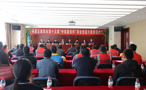 10月25日上午,怀柔区建筑业第十五届“中航建设杯”职业技能大赛颁奖典礼在华体会手机网页版登录入口-华体会(中国) 总部三层多功能厅举行。怀柔区建筑业协会会长、大赛组委会副主任王贵军,区总工会副主席解忠明,集团公司总工程师、大赛组委会副主任陈劲一同参加,同时到场的还有各参赛单位代表及获奖选手共计50余人。