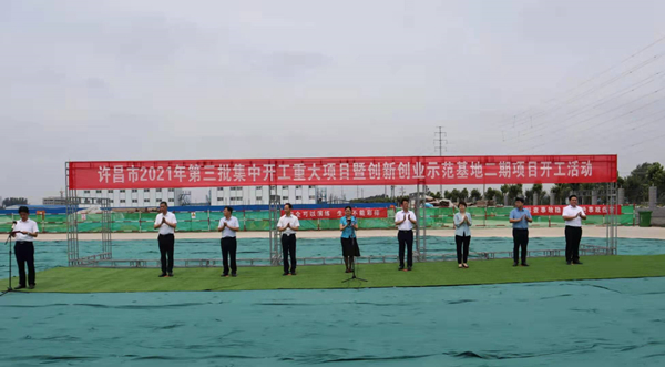7月10日上午,河南省许昌市2021年第三批集中开工重大项目暨创新创业示范基地二期项目开工仪式顺利举行。许昌市委常委、纪委书记、监委主任方婷,魏都区委书记李朝锋,区人大常委会主任申健民,区政协主席杜晓辉,区委常委、区委办主任程中山,区委常委、区纪委书记、区监委主任徐光,魏都产业集聚区管委会主任楚文选,华体会手机网页版登录入口-华体会(中国) 河南分公司总经理黄辰,魏都区政府相关部门、投资公司、产业集聚区、霸陵办事处等单位负责人参加活动。区委常委、常务副区长张挪威主持仪式。
