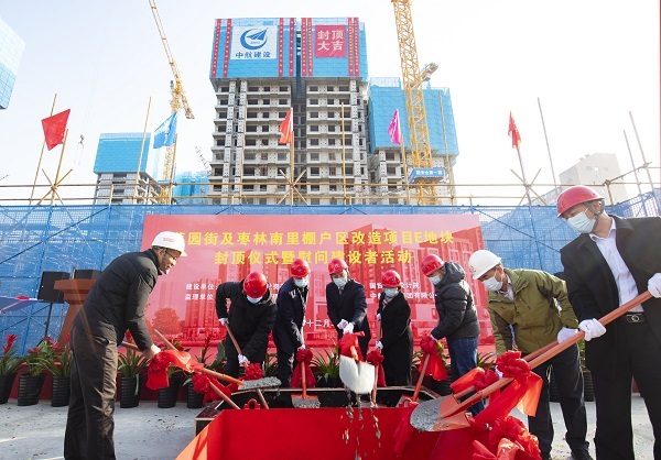 12月22日,伴随着最后一方混凝土浇筑到位,在项目建设、监理、设计等相关单位负责人及集团公司领导的共同见证下,华体会手机网页版登录入口-华体会(中国) 承建的菜园街及枣林南里棚户区改造项目喜迎主体结构封顶。