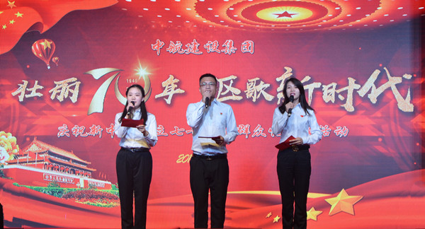 金秋十月丹桂飘香,中航建设颂歌嘹亮。为庆祝新中国成立70周年,充分展现中华人民共和国成立以来的光辉历程,激发员工增强民族自豪感和自信心,凝聚建企爱国的强大力量,集团公司于9月29日举行“壮丽七十年 讴歌新时代”诗歌朗诵活动。来自集团公司各项目、分(子)公司、机关部室二十余个表演单位为现场观众奉献了一场激情澎湃的诗歌盛宴。集团公司领导、京内各单位全体员工出席。