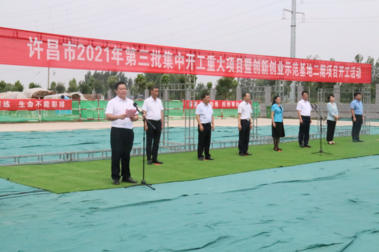 7月10日上午,河南省许昌市2021年第三批集中开工重大项目暨创新创业示范基地二期项目开工仪式顺利举行。许昌市委常委、纪委书记、监委主任方婷,魏都区委书记李朝锋,区人大常委会主任申健民,区政协主席杜晓辉,区委常委、区委办主任程中山,区委常委、区纪委书记、区监委主任徐光,魏都产业集聚区管委会主任楚文选,华体会手机网页版登录入口-华体会(中国) 河南分公司总经理黄辰,魏都区政府相关部门、投资公司、产业集聚区、霸陵办事处等单位负责人参加活动。区委常委、常务副区长张挪威主持仪式。
